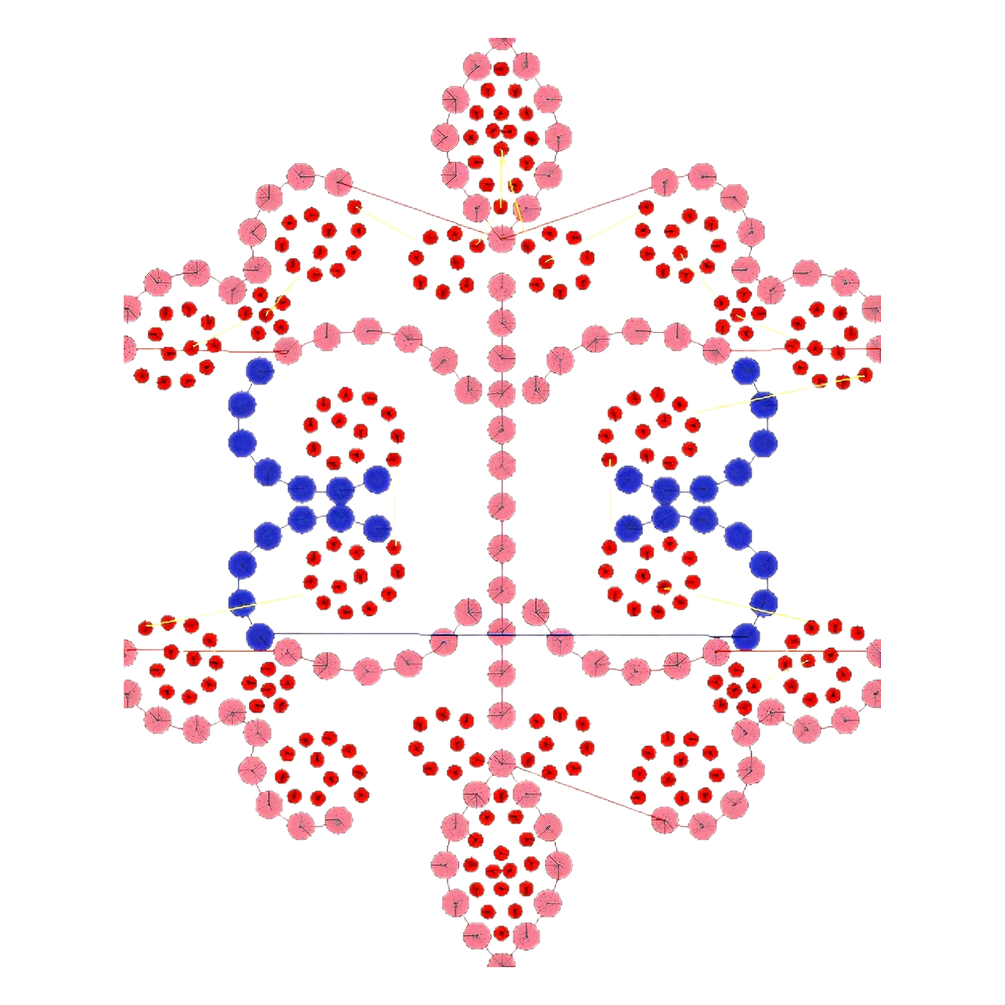 Yeh ARROW hotfix sequins design ek intricate decorative pattern ko darshata hai jisme symmetrical curves aur spiral motifs ka upyog kiya gaya hai. Is design ki kul sanrachna 508 stitches par adharit hai, jo 364 sequins ko unki nirdharit grid location par fix karne ka karya karti hain. Isme teen rangon (Pink, Blue, Red) ka upyog kiya gaya hai: