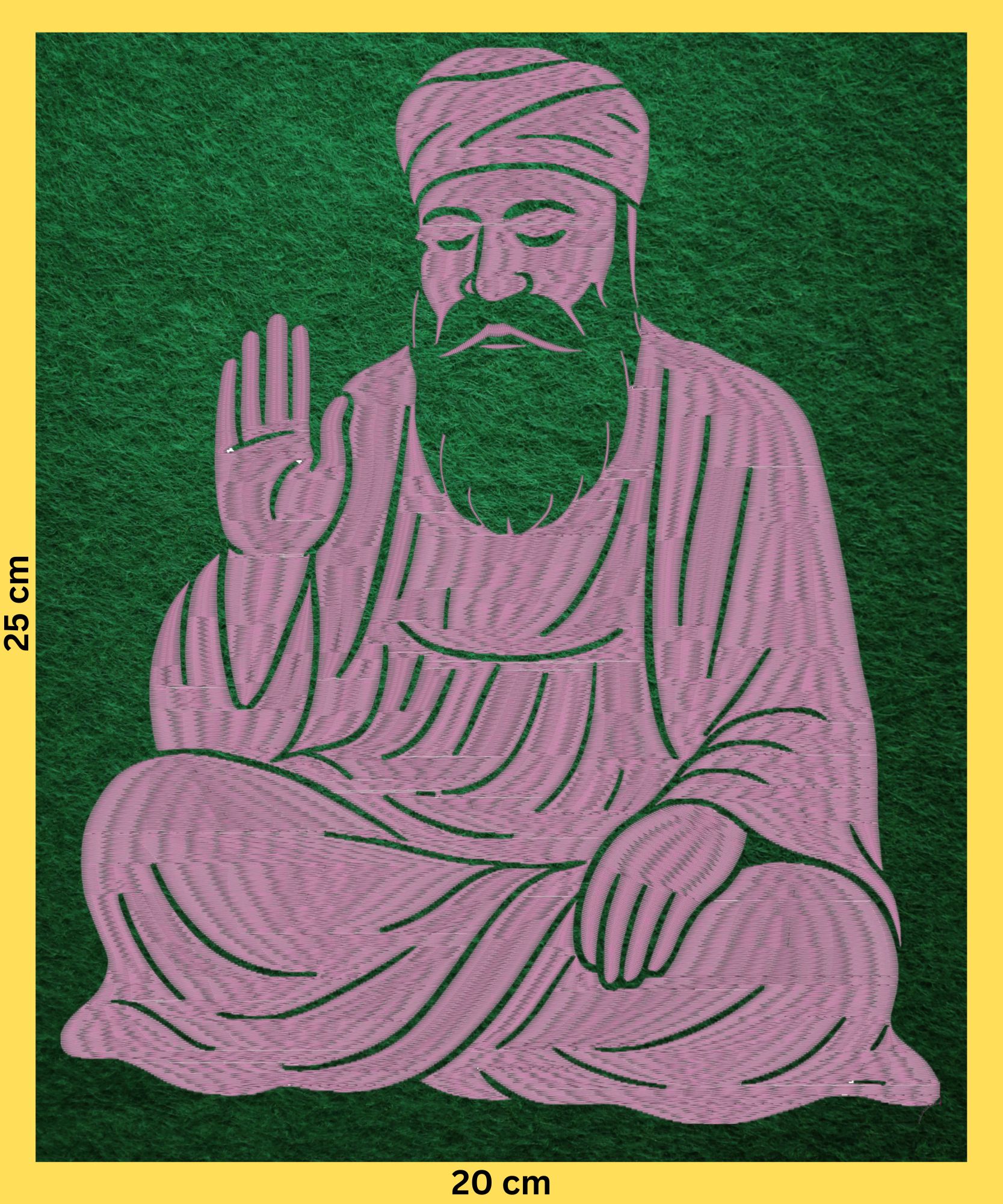Invite peace and divinity into your home with this exquisitely digitized Guru Nanak Dev Ji machine embroidery design.